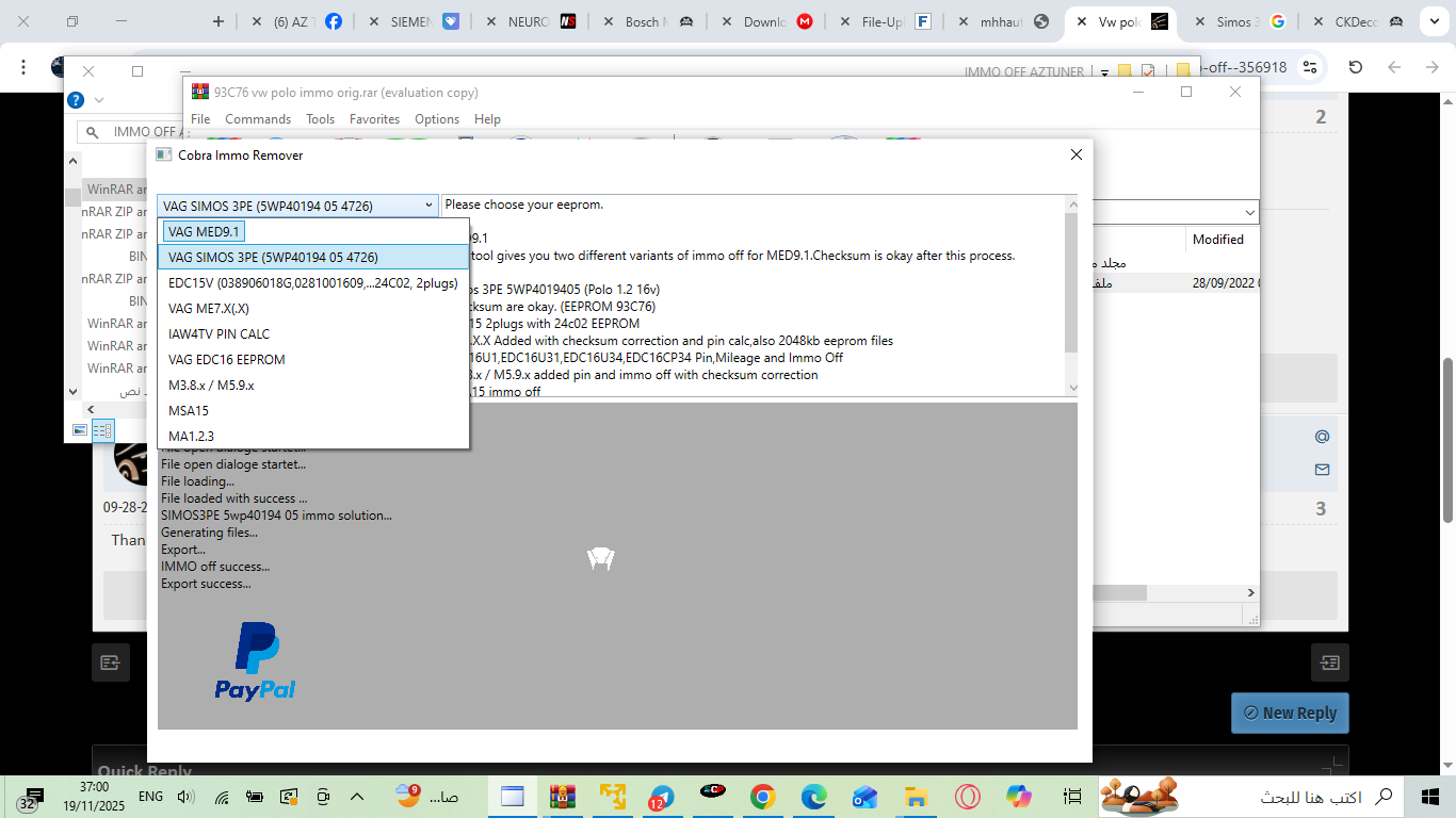 This tool gives you two different variants of immo off for MED9.1.Checksum is okay after this process.