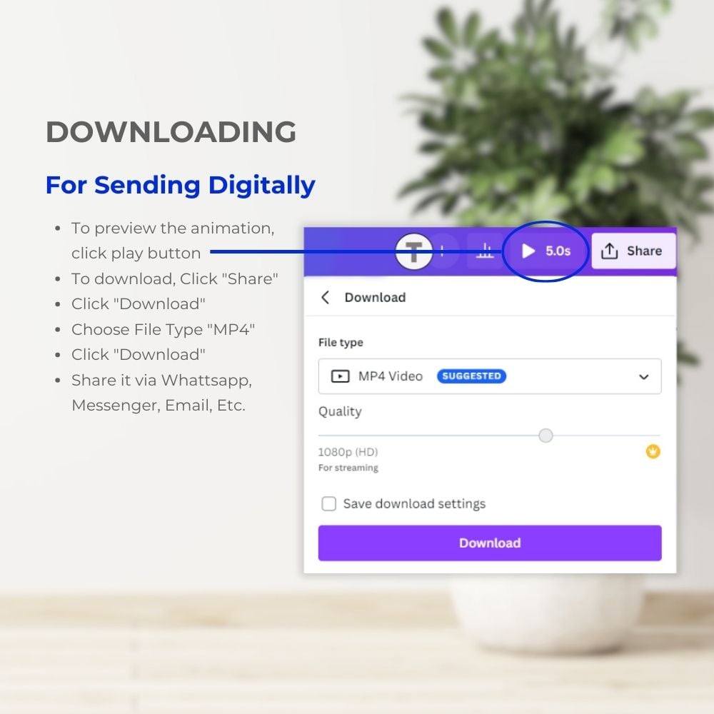 • AFTER PURCHASE, download the PDF. Click "EDIT YOUR TEMPLATE HERE", your CANVA template will open. EDIT then DOWNLOAD as MP4.
