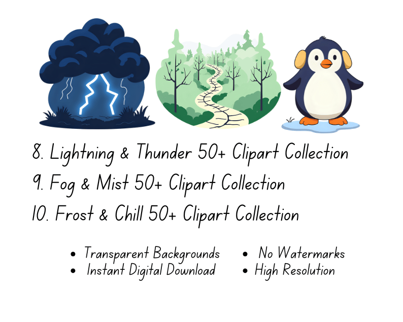 Capture the beauty of nature's ever-changing moods with this Weather & Seasons Bundle Collection! Whether you’re designing educational materials, scrapbooks, invitations, or creative projects, this collection offers a vast range of high-quality weather-themed clipart to suit every season and climate.