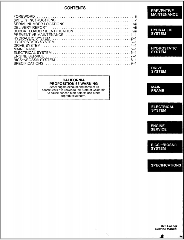 1995 Bobcat 873 Service Manual