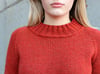 This simple top-down raglan sweater features a mock turtleneck, A-line shaping, reverse stockinette side panels, and 3/4 sleeves.This pullover can be knit and worn with any amount of ease desired.