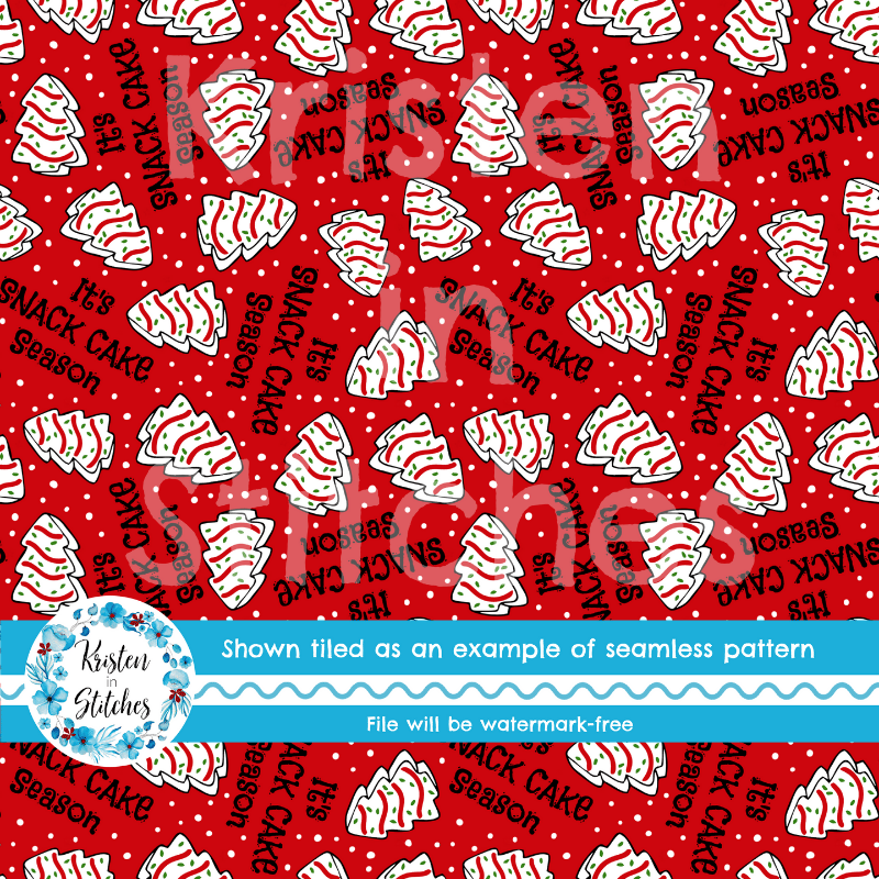 It's Snack Cake Season Christmas Tree Little Debbie Cakes Seamless Pattern