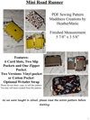 The Mini Road Runner is perfect compact Wallet. Features 6 Card Slots, 2 Slip pockets, and a Zippered pocket. Optional wristlet strap for carrying, or leave it off and slip it in your pocket or bag. This pattern includes two versions, one for an all Vinyl version, and one for a Cotton pocket version.