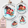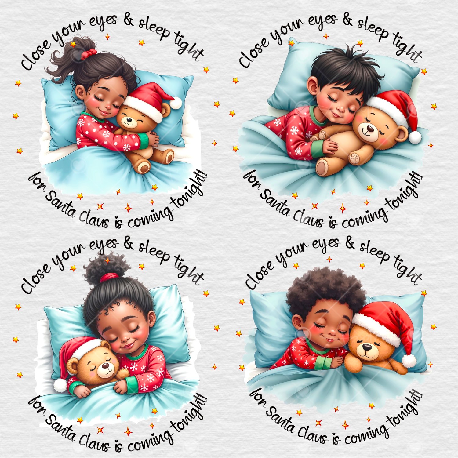 Christmas design, “Close your eyes…” girl and boy, darker skin, 4 PNG, sublimation, print, DTF, UVDTF.. Ideal for baubles but designed on a 10” x 10” canvas so could also be used for clothing etc