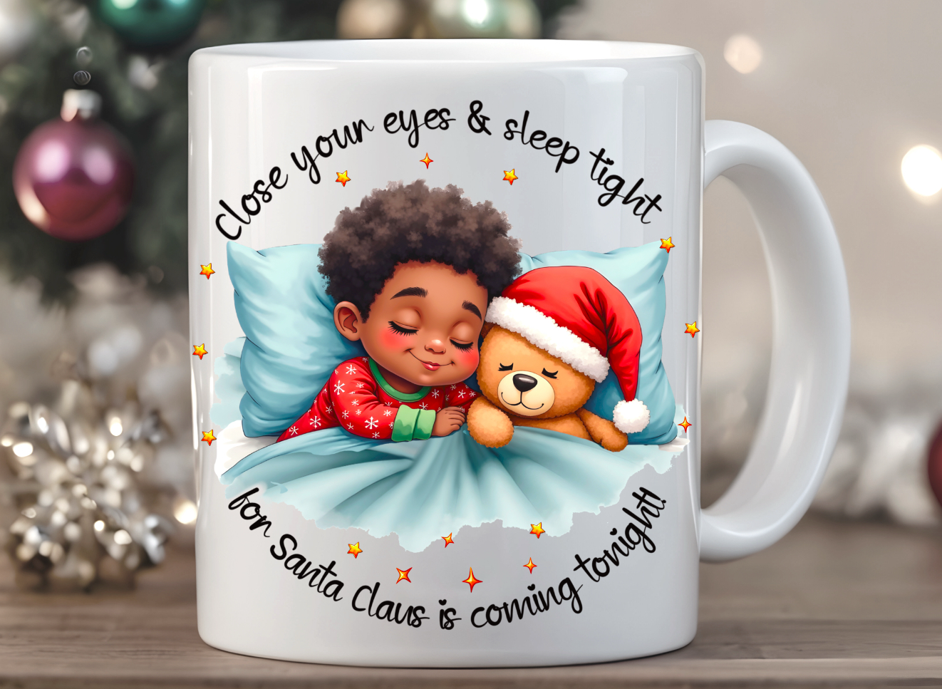 Christmas design, “Close your eyes…” girl and boy, darker skin, 4 PNG, sublimation, print, DTF, UVDTF.. Ideal for baubles but designed on a 10” x 10” canvas so could also be used for clothing etc.