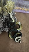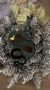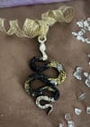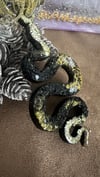 An elegant ornament in the shape of a black and gold snake — the symbol of 2025. Handcrafted from premium Italian epoxy resin, featuring sparkling gold accents and a textured edge. This piece is created with meticulous attention to detail, making it a unique and stylish addition to your holiday decor.