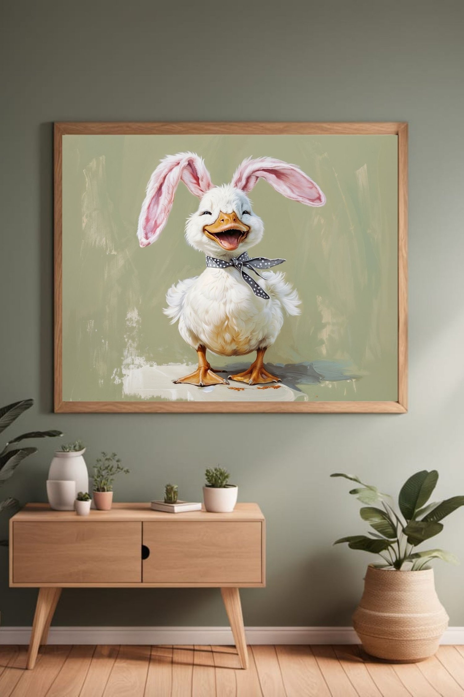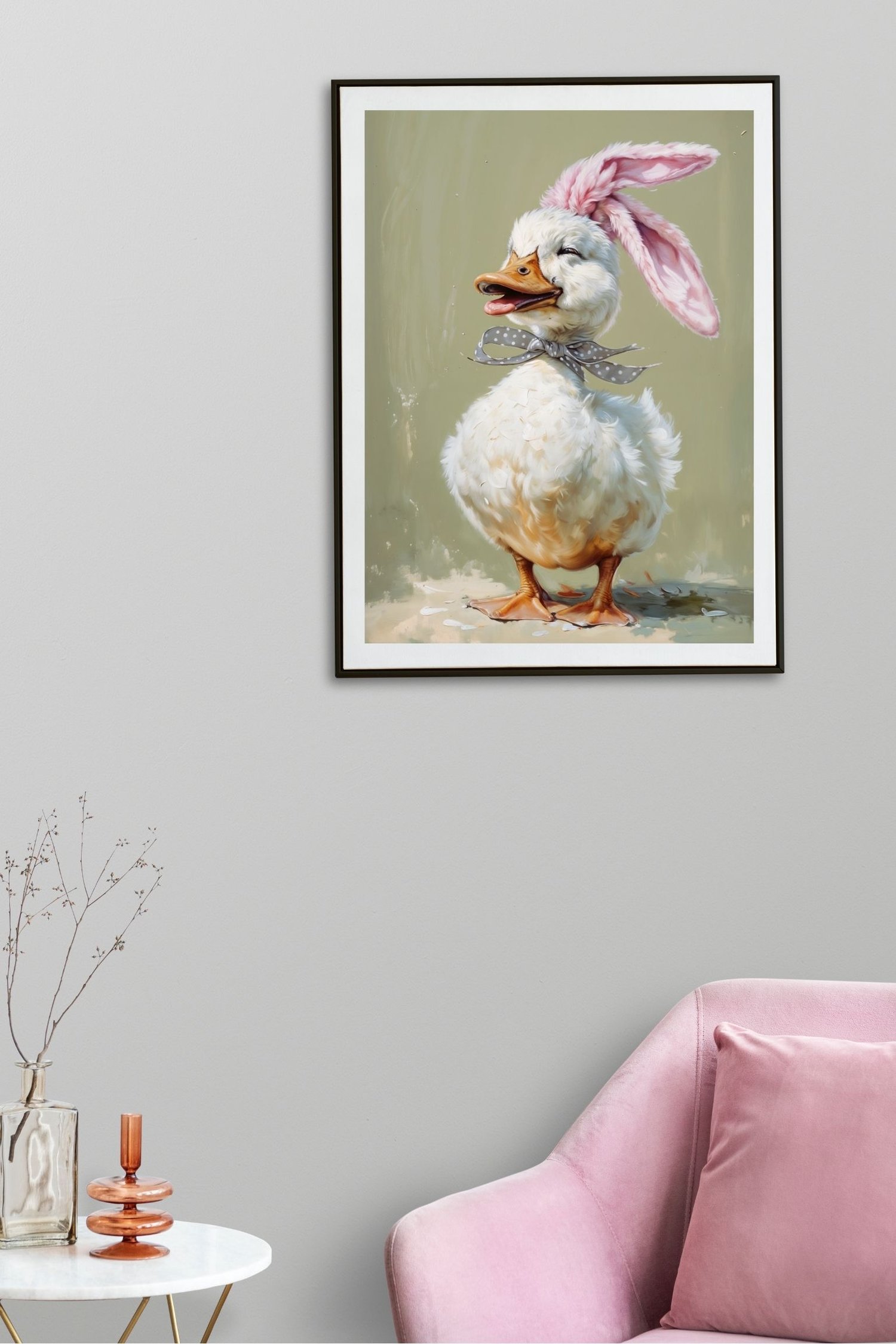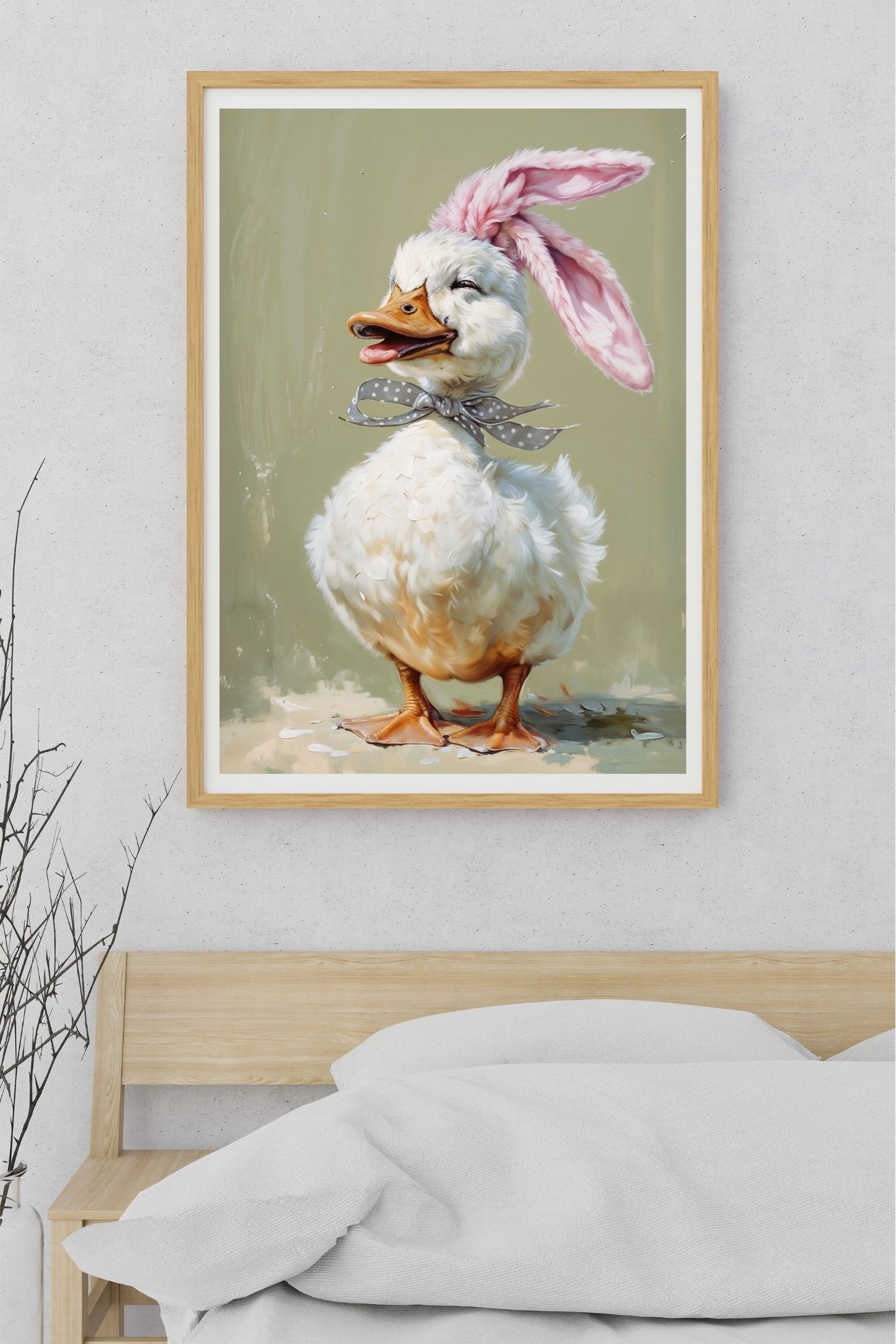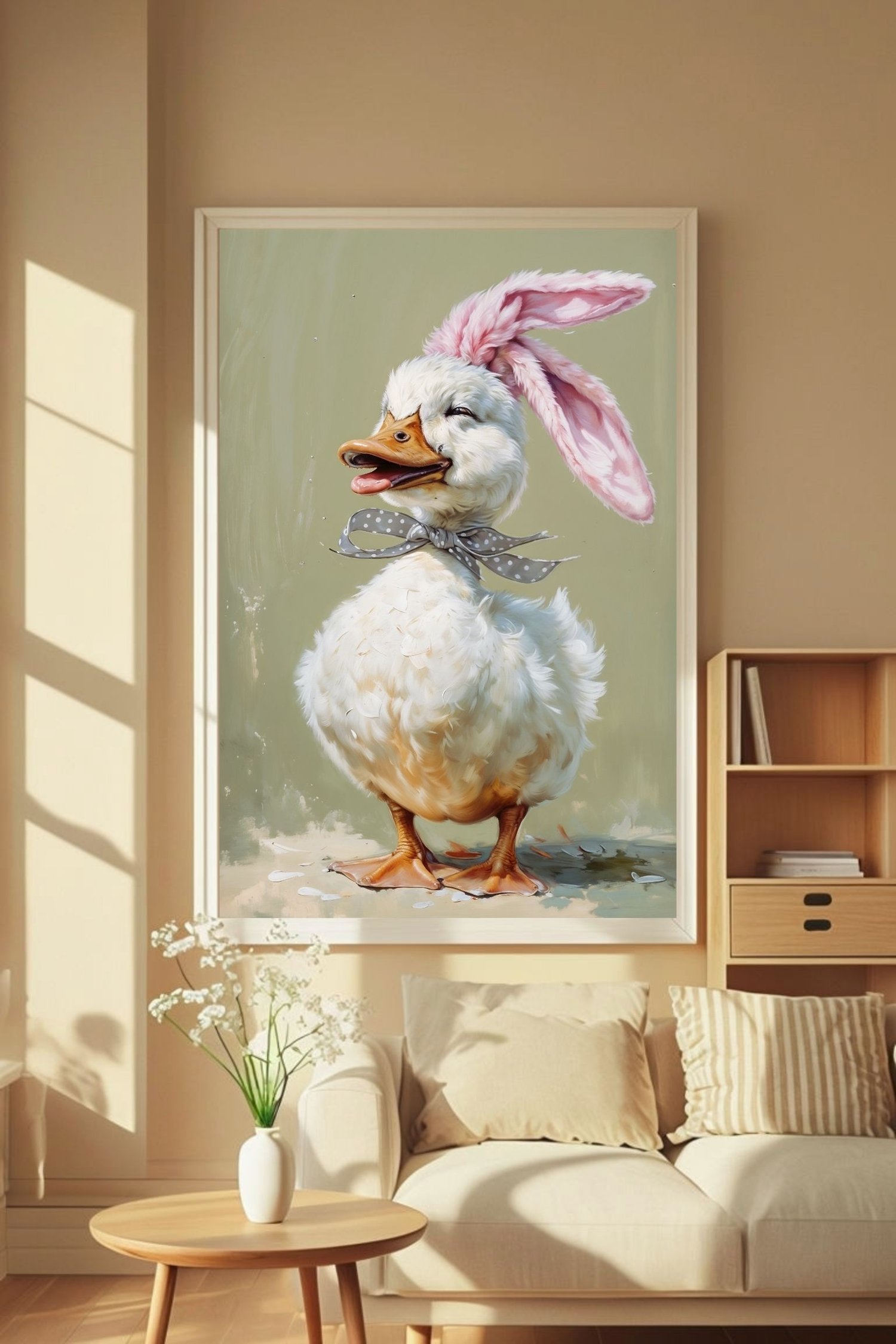 Whimsical Duck with Bunny Ears Wall Art | Cute Nursery Printable Decor | Instant Download 3:4 & 4:3 Ratios
