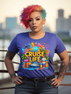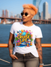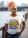 Live the tropical dream with this playful “Cruise Life” design! Featuring a cruise ship, globe, flamingo, palm trees, passport, and a rainbow sundae—this colorful image is perfect for any traveler, cruise lover, or summer enthusiast.
