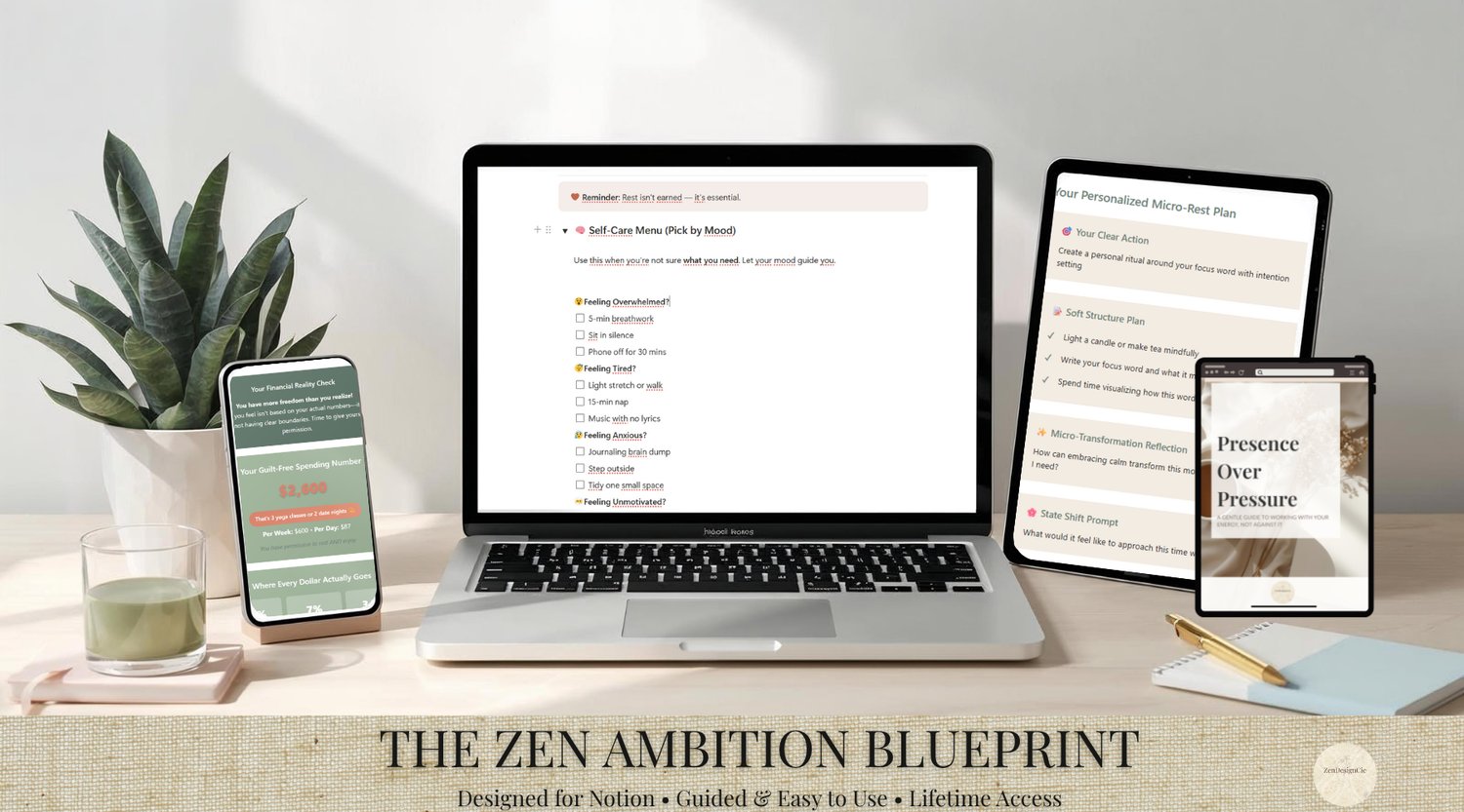A calming, guided version of The Zen Ambition Blueprint designed to help you lighten your mental load and move through your days with more ease.