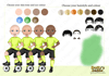 three different skin tones, three eye colours and six hair colours)