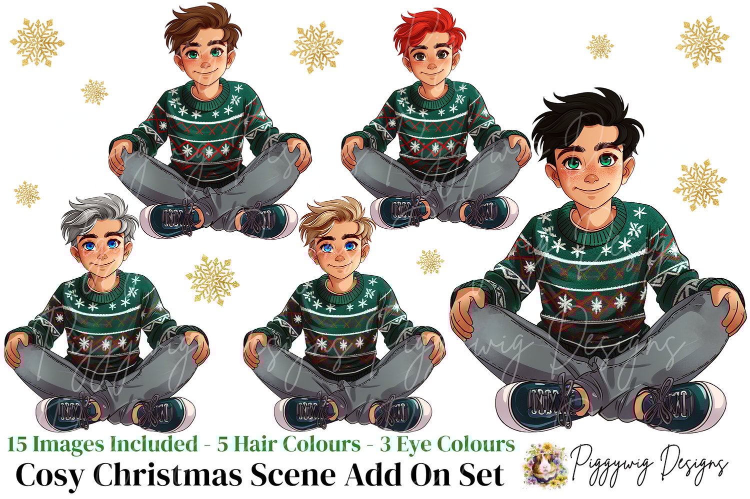 Cosy Christmas Boys Add on Clipart Set.