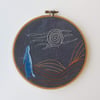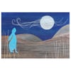 This Moon Gazing Hare small art quilt measures approximately 11 x 7 in/28 x 16 cm.