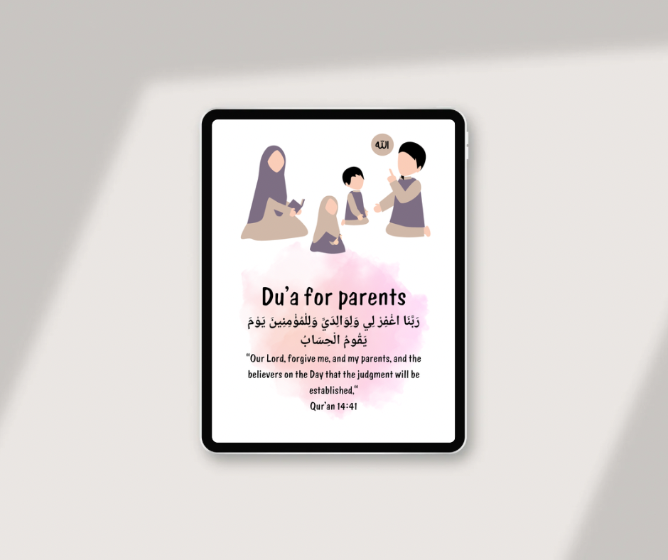 A heartfelt Islamic printable designed to help children learn and memorise the beautiful Qur’anic du’a for parents. Perfect for teaching gratitude, kindness, and love towards the ones who raised us.