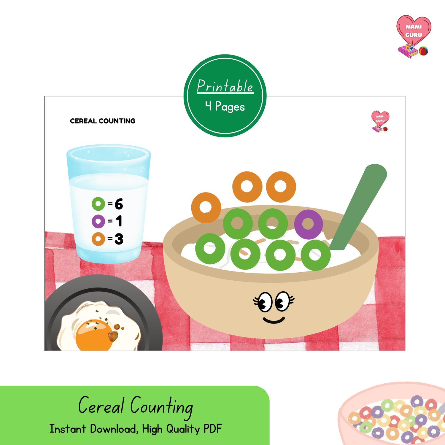 Cereal Counting Activity – Breakfast Themed Math Game for Preschool and Kindergarten