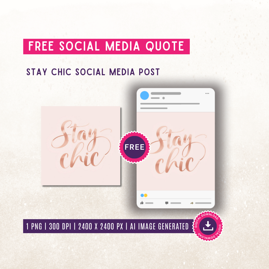 Add a touch of style to your feed with this free “Stay Chic” social media post. Designed in soft blush tones with a modern script font, it’s ready to use as-is, perfect for Instagram, Facebook or Pinterest.