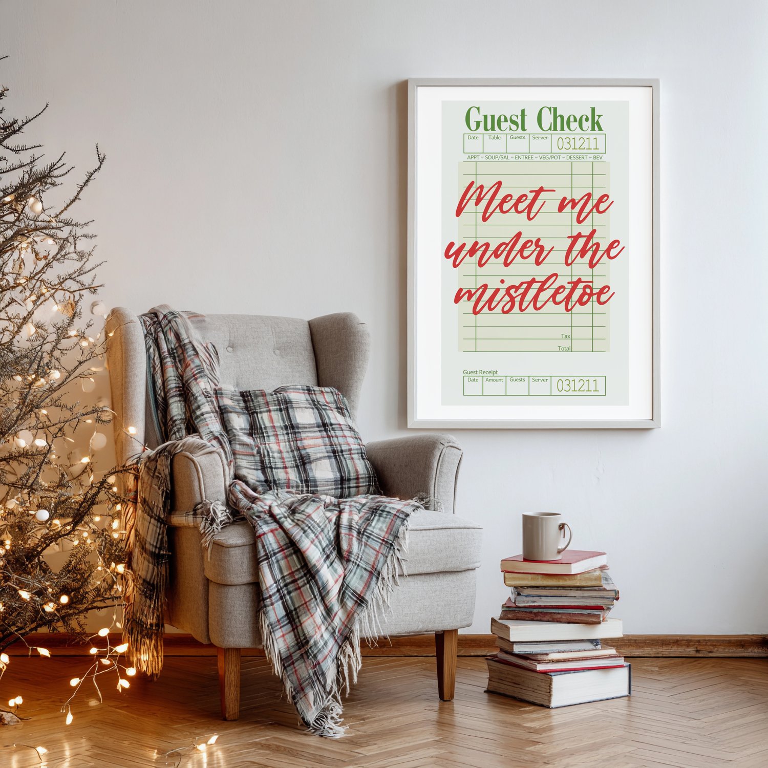 Meet Me Under the Mistletoe Printable | Christmas Guest Check Wall Art | Retro Holiday Kitchen Decor (Digital Download)
