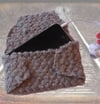 Enfold your smart device or tablet in a luxury wallet with a dense, protective, all-over cable pattern. Knit in one piece, this is an entertaining knit that takes you from the front underlap to the back and side vents then to the front flap. Sew on hook and loop tape closures to bring it all together. Express your knitter’s soul and enjoy the lush texture of this lovely case on the devices you use the most!
