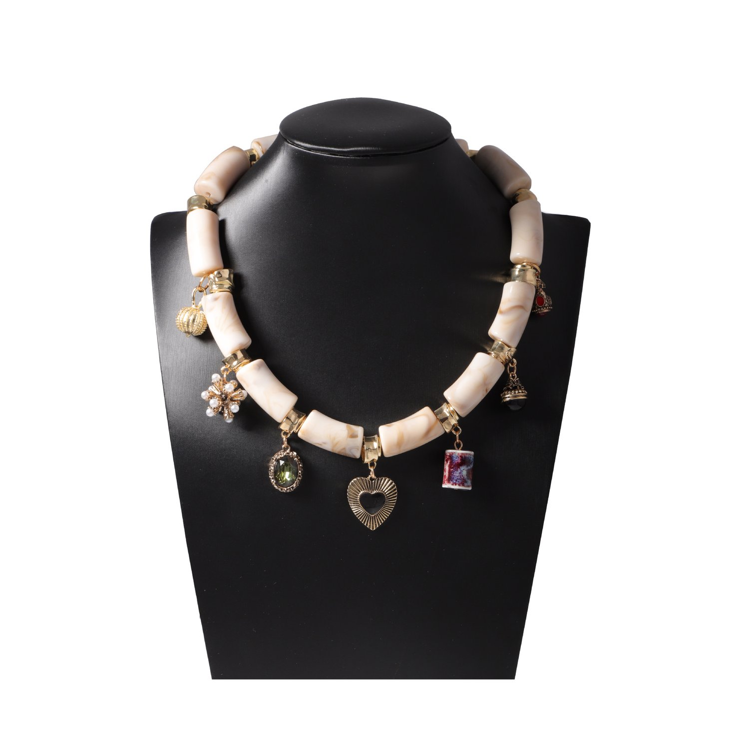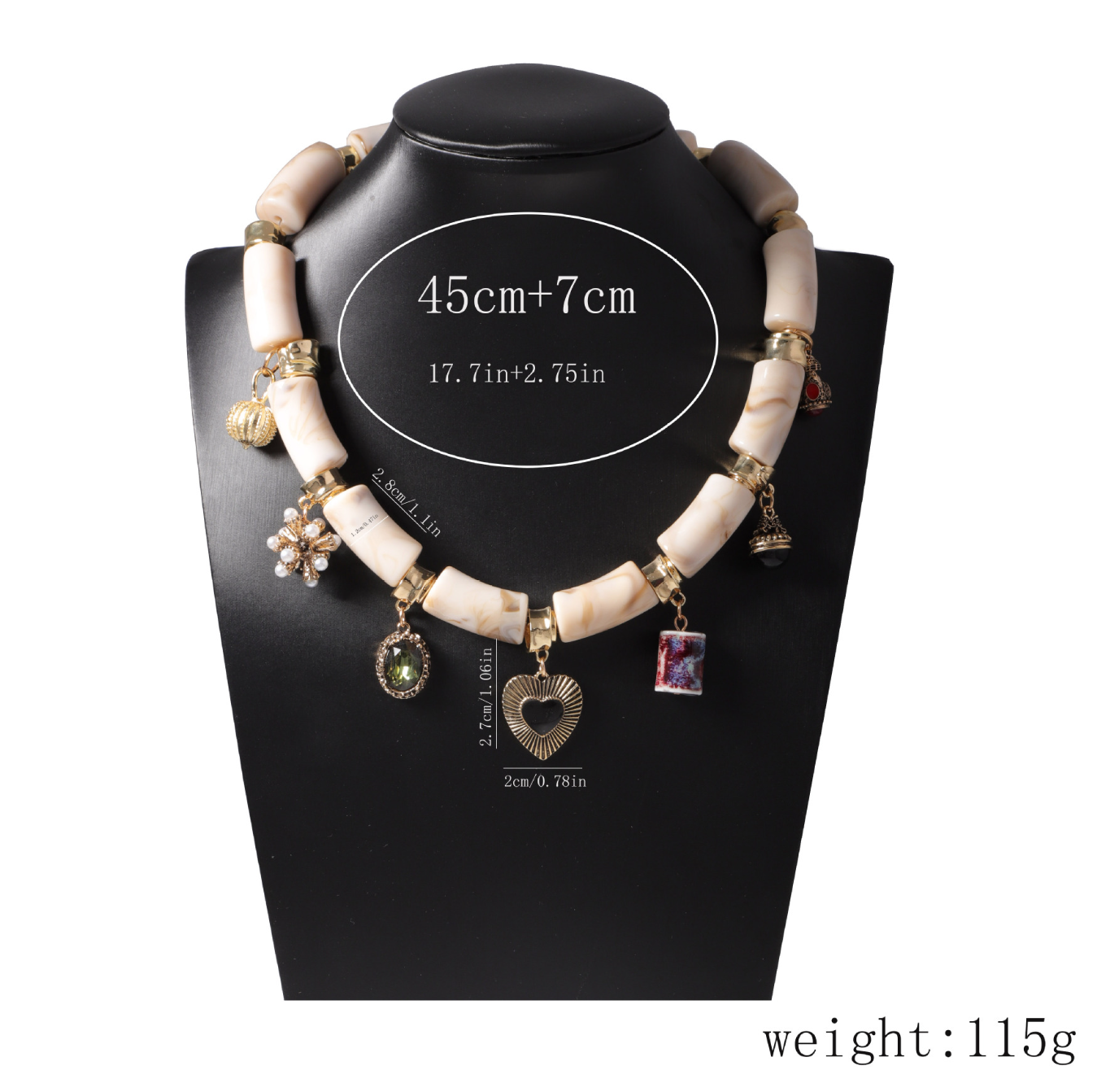 Boho chic handmade alloy pendant resin bamboo joint exaggerate stacking necklace