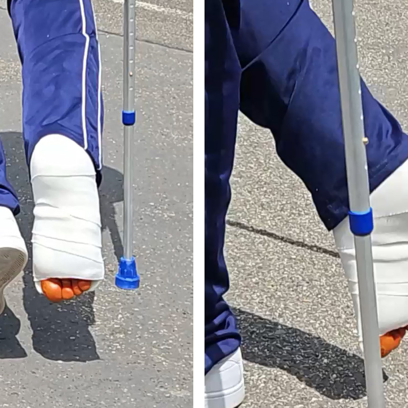 BLUE LONG PANTS OVER A WHITE ACHILLES SLC SPLINT
