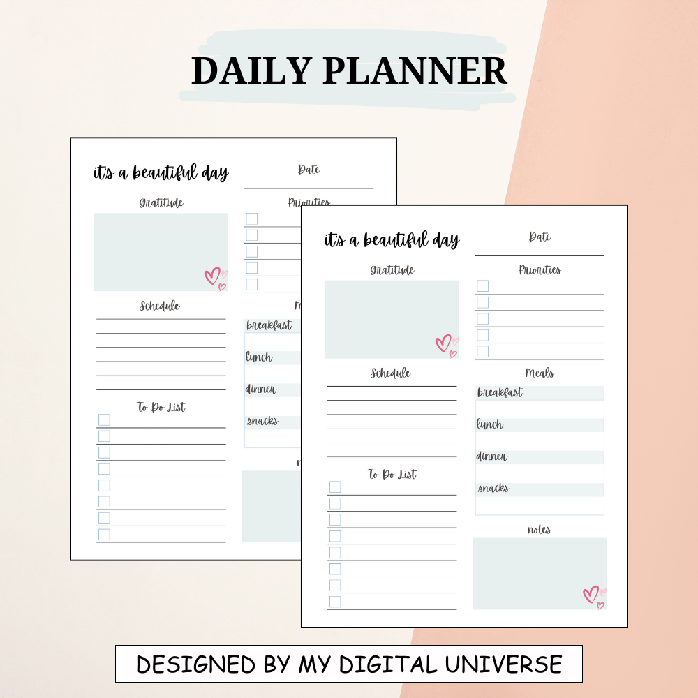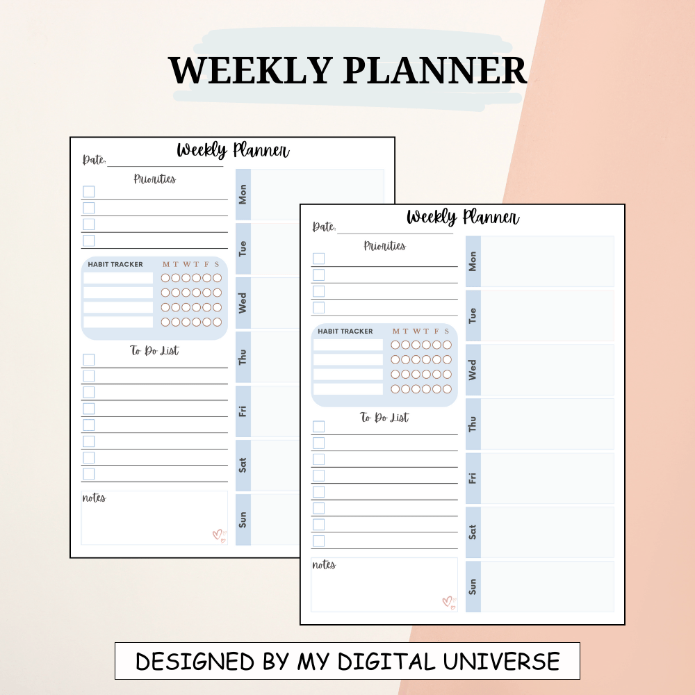 This undated printable planner set is designed to help you prioritize your goals and stay accountable. It has helped me reduce stress and manage tasks more effectively, and it can do the same for you! Use these planners to organize your tasks and stay on track.