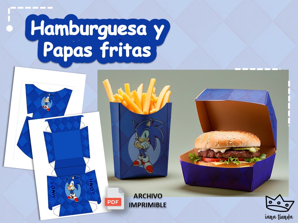 ❥ Plantilla de Hamburguesa y Papas fritas con el diseño de Sonic – Formato PDF, listas para imprimir.