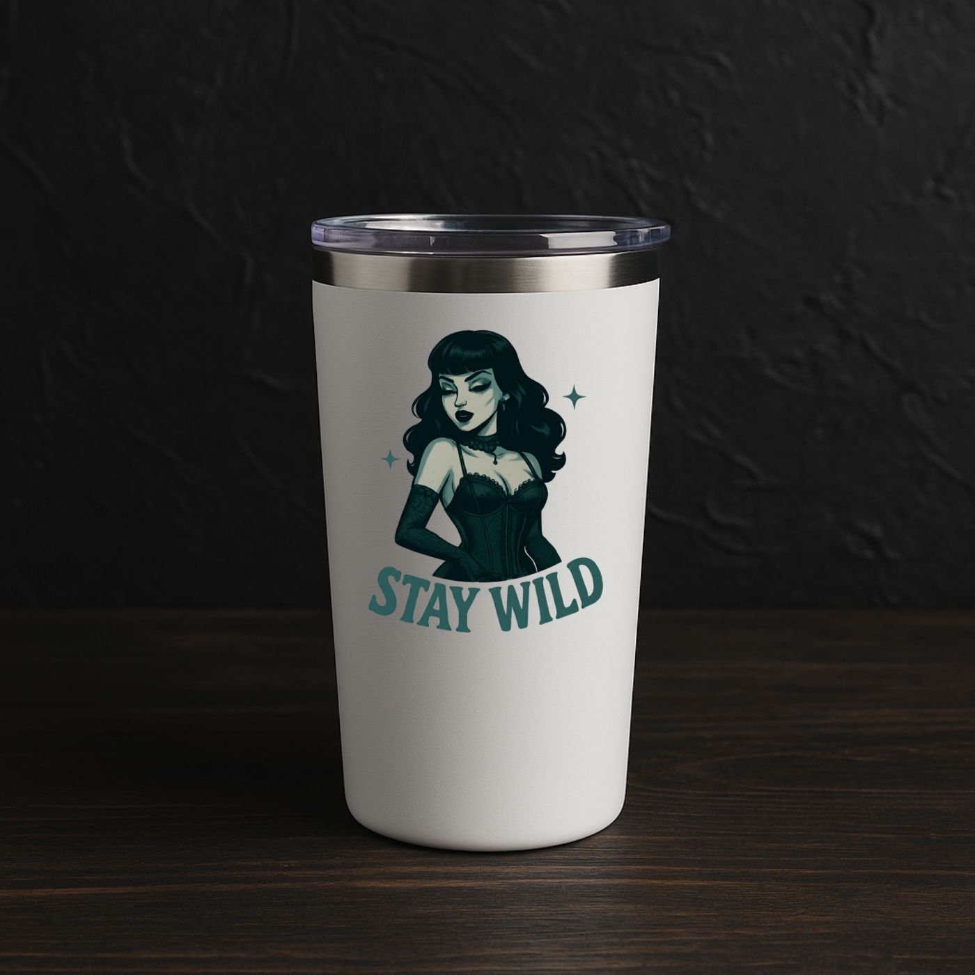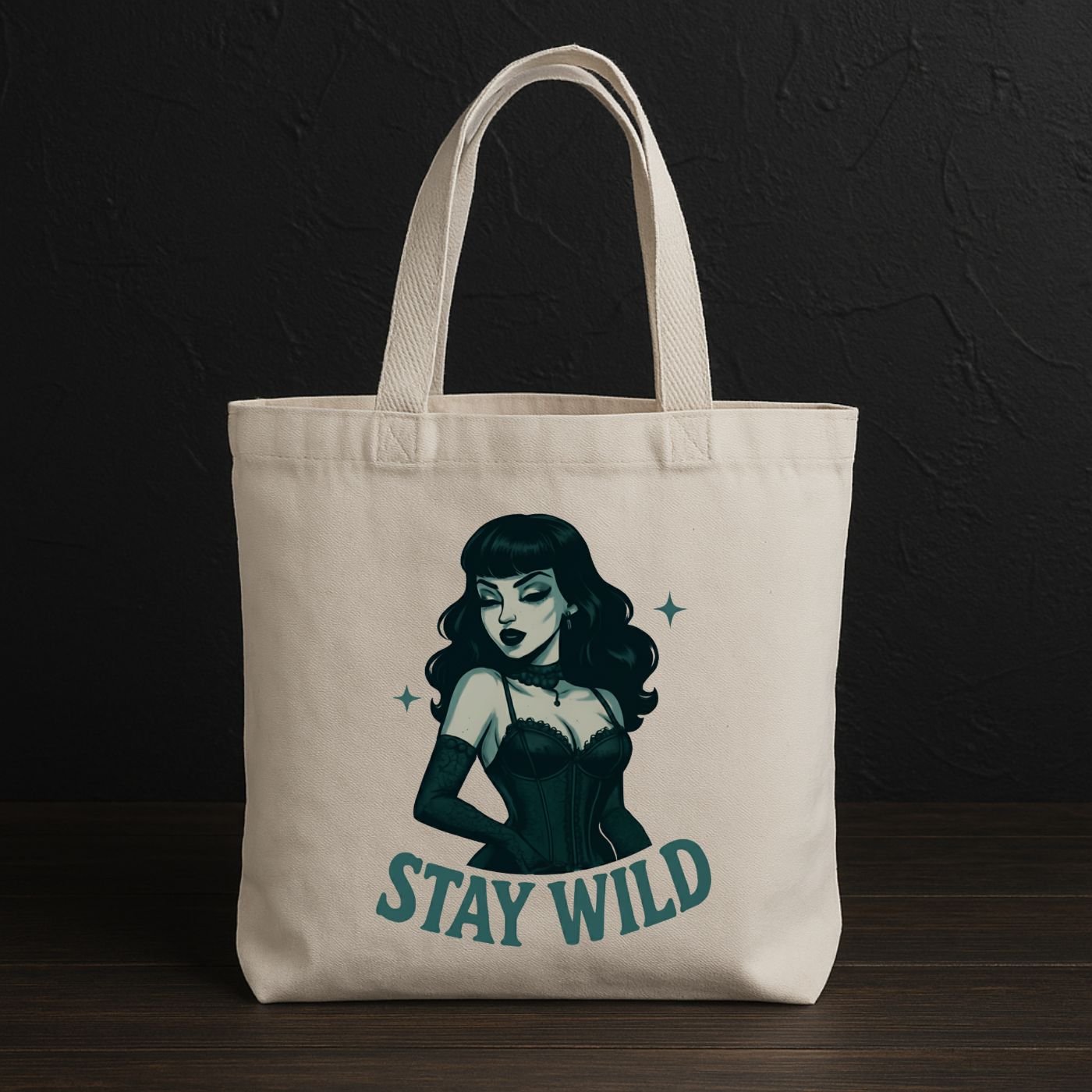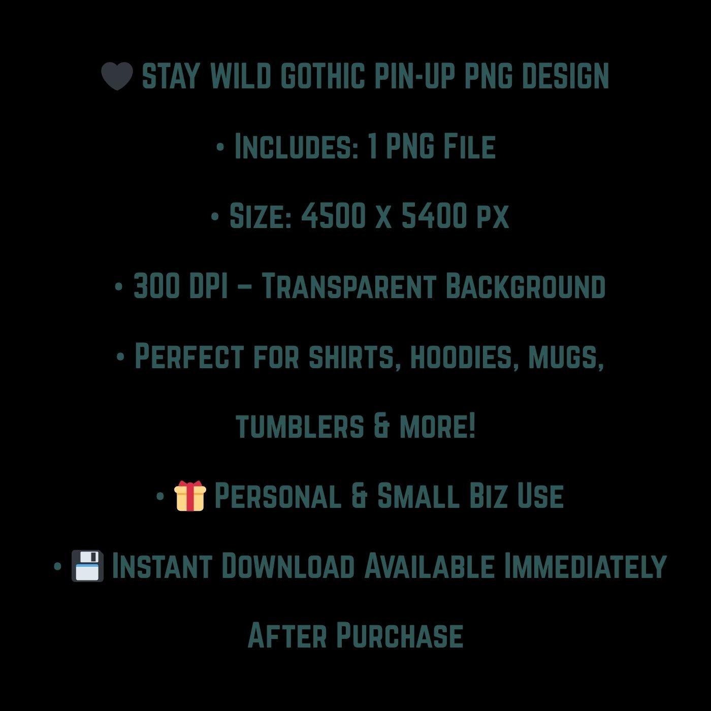 Gothic Pin-Up Girl PNG | Dark Retro Corset Art | Vintage Tattoo Babe Clipart | Edgy “Stay Wild” Sublimation Design