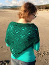 Worked from the point up Emerald Lattice is a versatile lace shawl that can be made to suit nearly any gauge or amount of yarn. To adjust the size simply begin the edging pattern when the shawl has reached the desired size.