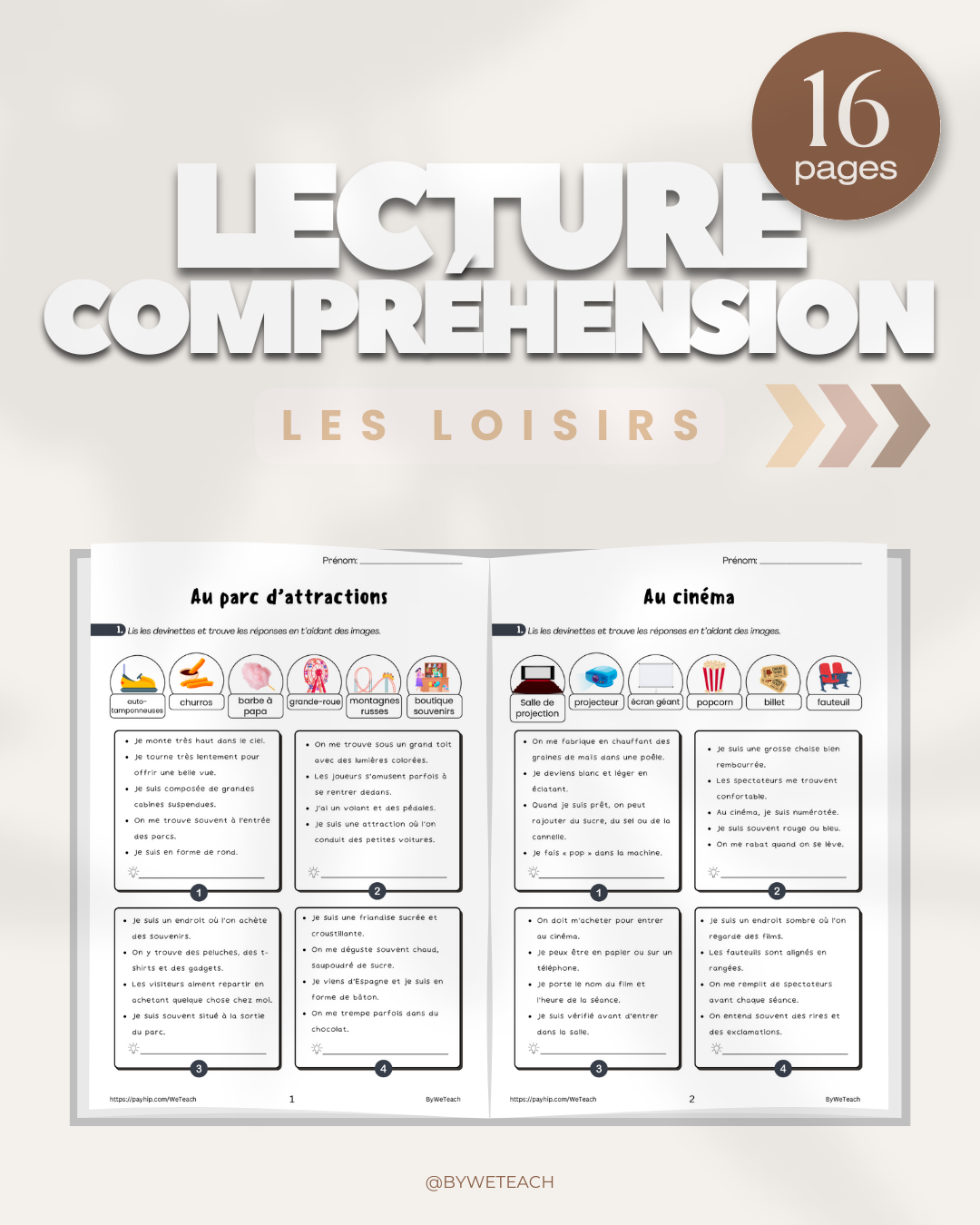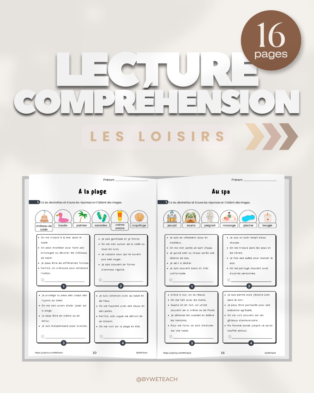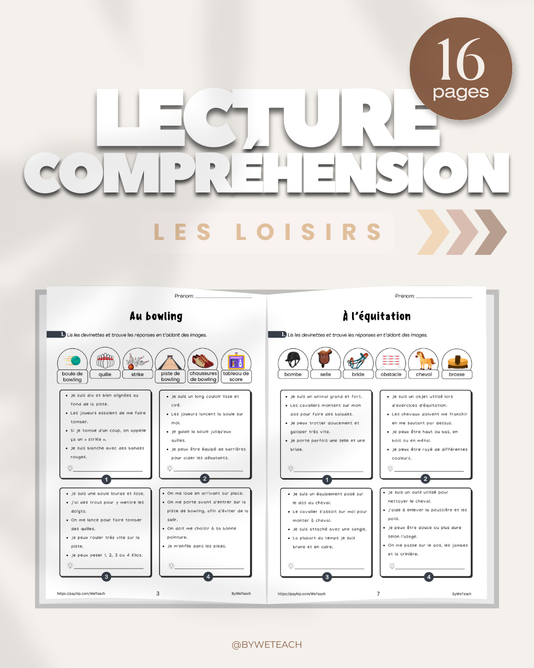Lecture Compréhension: Devinettes -les loisirs- 16 pages