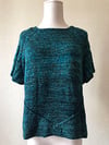 Green T is a simple loose fit sweater. Worked from top-down, in the round. Body is constructed with stockinette stitch and the lining separating knit and purl stitches. Sleeve is constructed with center cables and ribbing. This is very simple and easy design, appropriate for all leveled knitters.