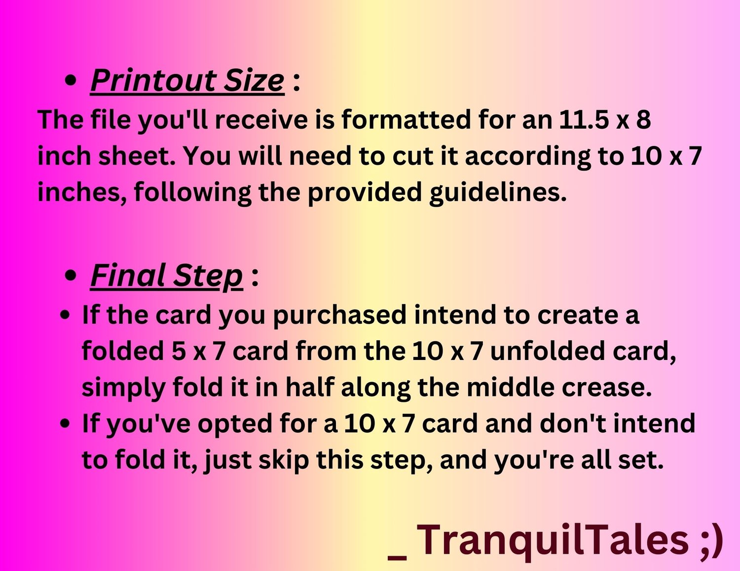 • You Will Be Provided With An 11.5 x 8 Printout File That You Should Cut According To The Guidelines Into 10 x 7 Format.