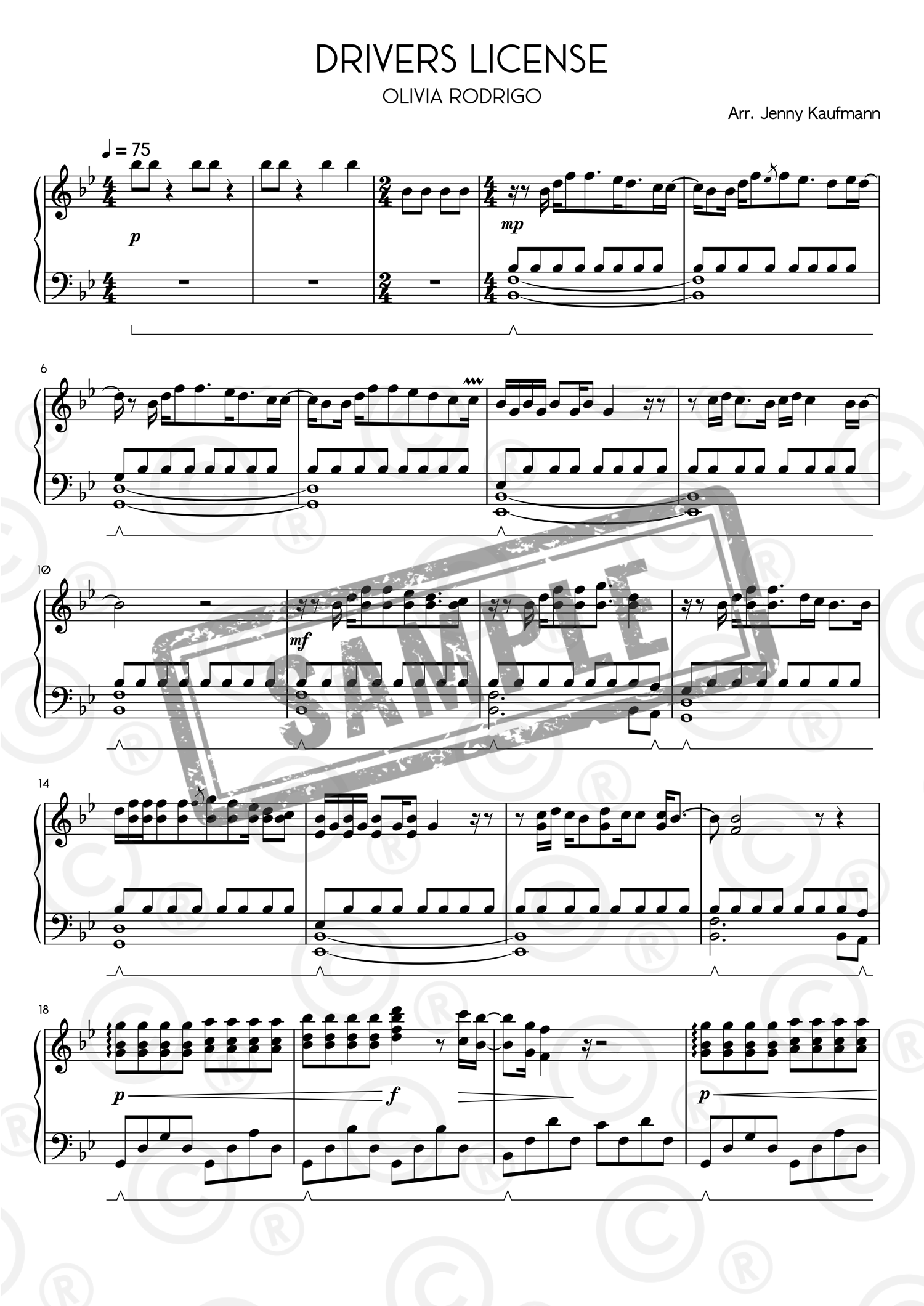Piano sheet music and midi – Drivers License by Olivia Rodrigo