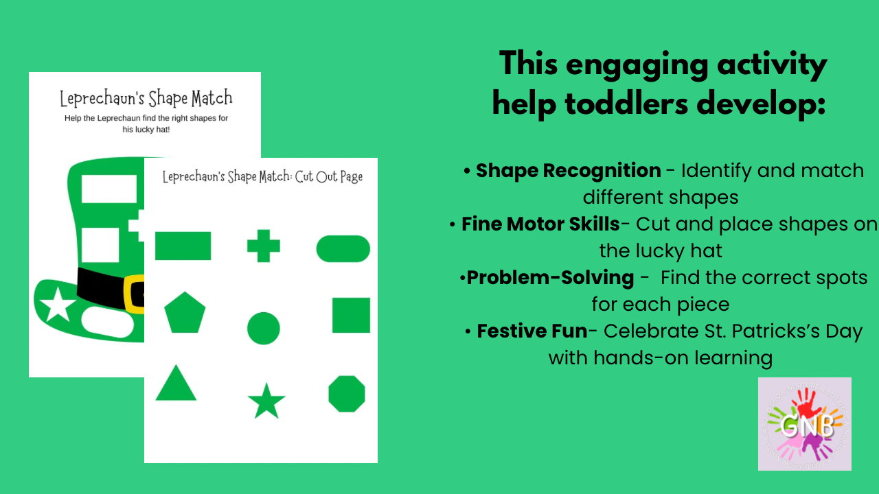 • Leprechaun Shape Match – Cut and paste shapes onto the leprechaun’s hat for shape recognition and problem-solving.