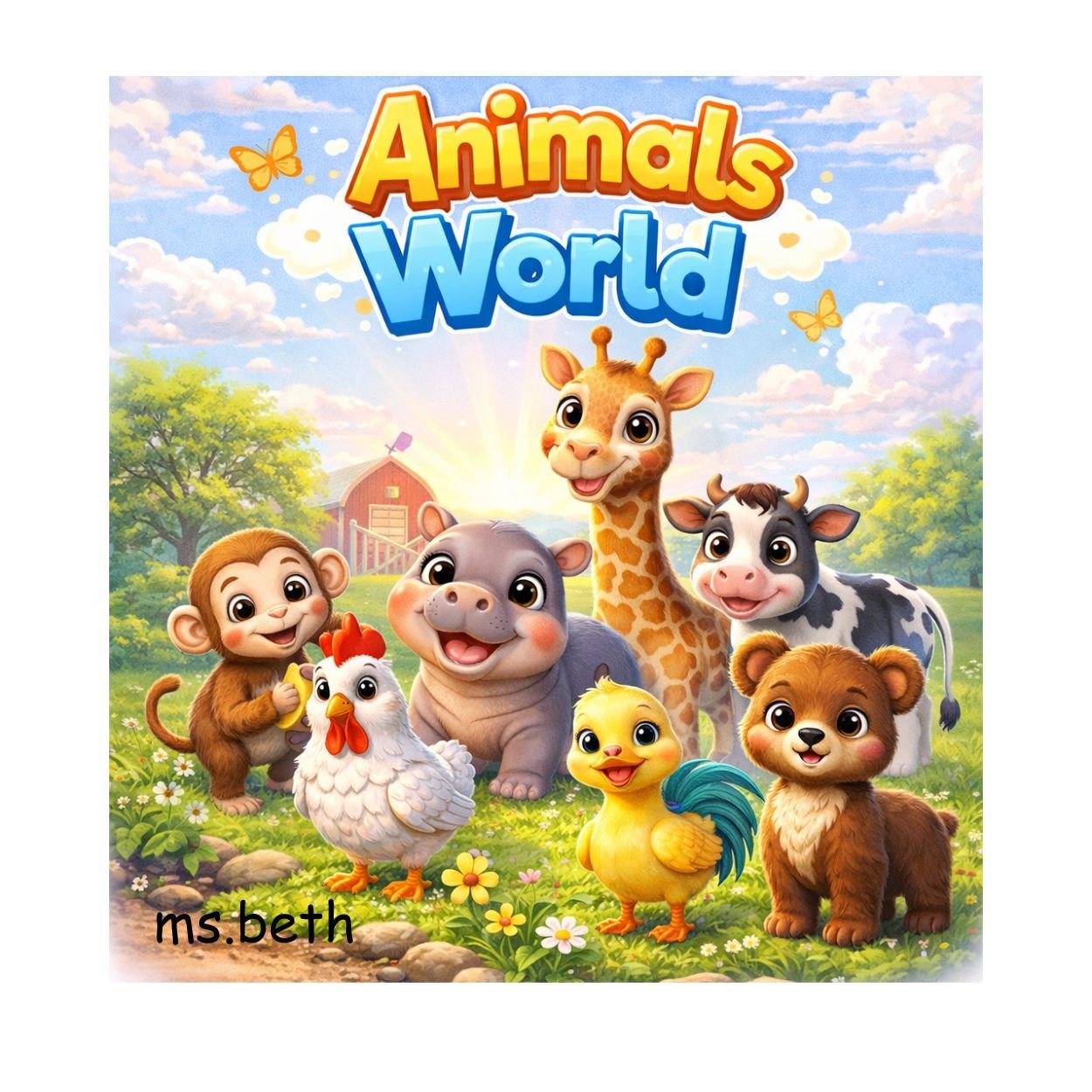β Cute animal visuals (dog, cat, elephant, sheep, horse, turtle, snake, frog, lion, zebra, owl, birds, mouse, monkey, chicken, duck, giraffe, cow, hippo, rooster, bear)