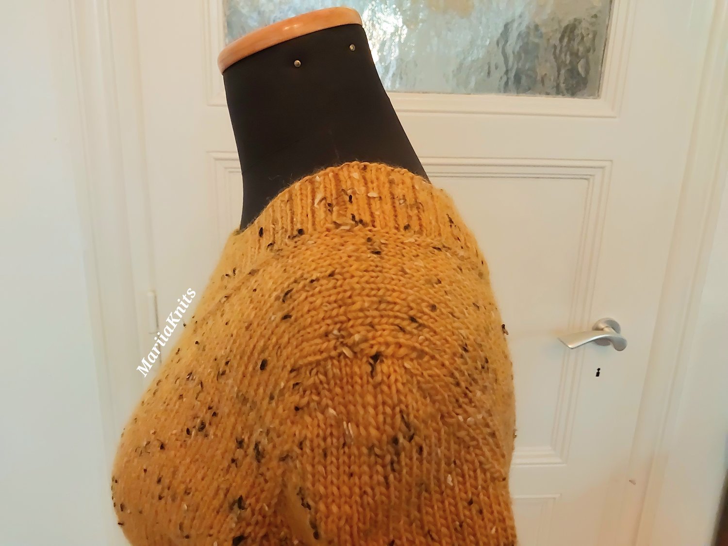 - The sweater is worked flat and consists of 4 parts that are then sewn together. Only the collar is worked in rounds.
