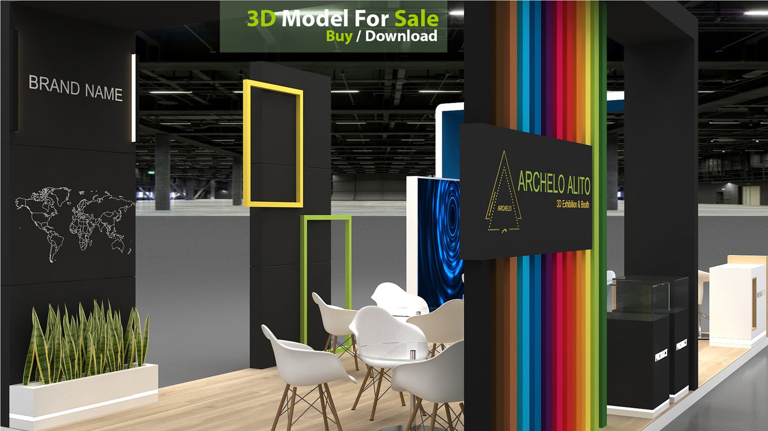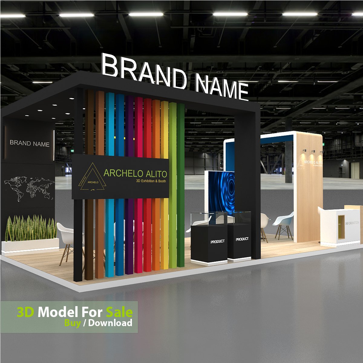 This professional 3D booth model is designed for exhibitions, trade shows, expos, fairs, and event displays.