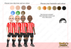 three different skin tones and three eye colours.