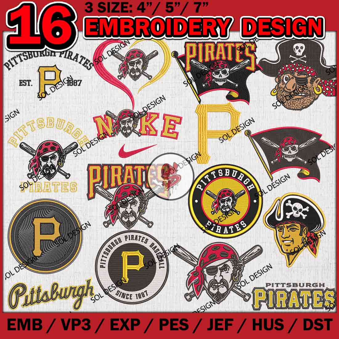 16 Pittsburgh Pirates MLB Team Bundle Embroidery Designs, MLB Pittsburgh Pirates Embroidery Designs, MLB Pirates Machine embroidery Designs Bundle, Baseball Team Bundle, Digital Download