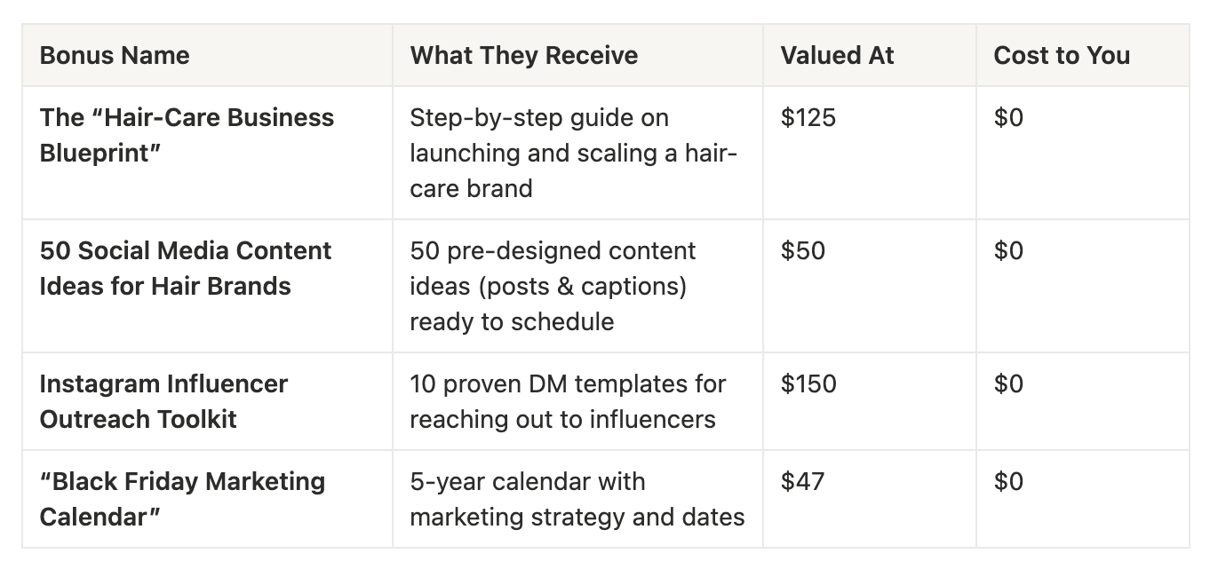 We’ve packed the Hair-Care Empire In-A-Box™ with exclusive bonuses that provide maximum value for minimal cost—ensuring clients feel they’re getting way more than expected.