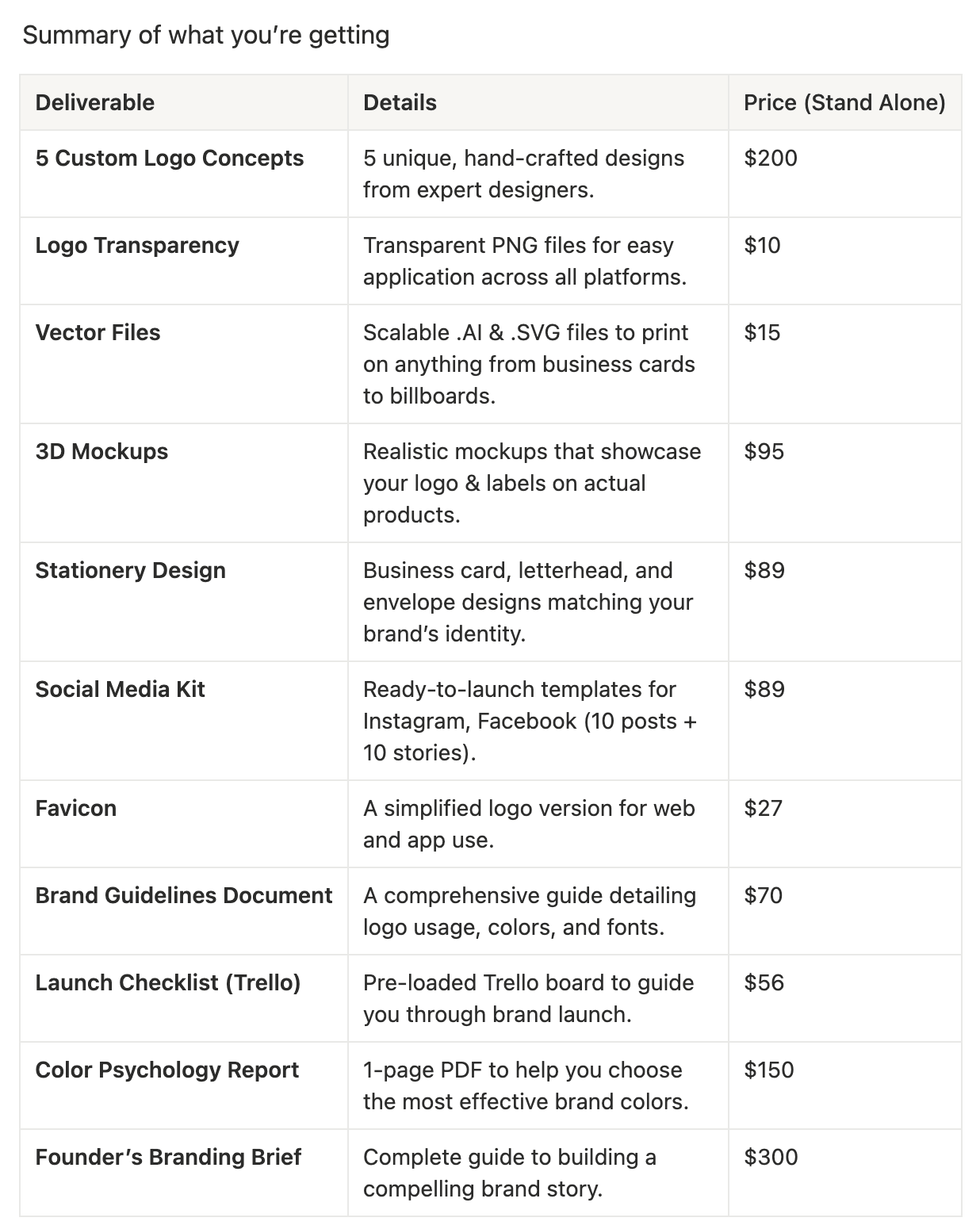 - Receive your deliverables (everything you need to launch your brand).
