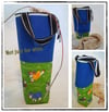 WINED UP is a horizontally-oriented wine tote that is quick to make and has great appeal as a gift.