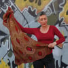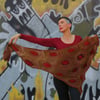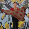 The final shape of the shawl is an asymmetrical triangle with a scalloped edge which creates the illusion of burning flames.