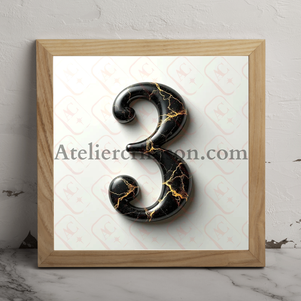 Number 3 luxury black marble and gold. Download now this high quality AI-generated digital image.