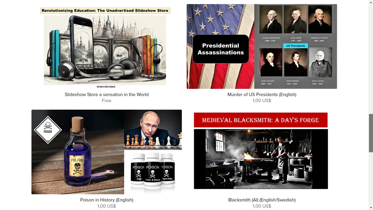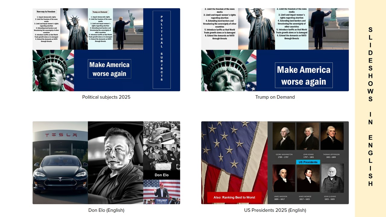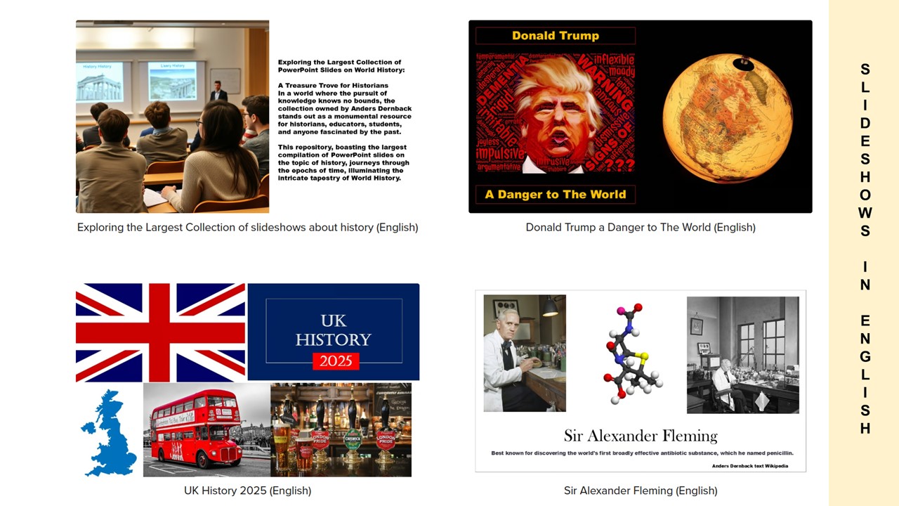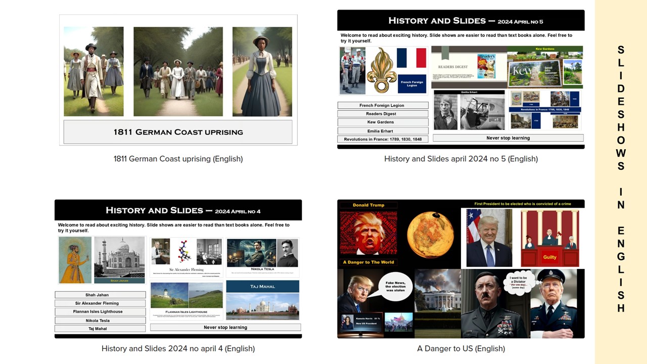 Welcome to download slideshows and audiobooks from my database. The design of the slide games is such that they are similar to picture books and for self-study. Text and image in combination teach more effectively than text alone.