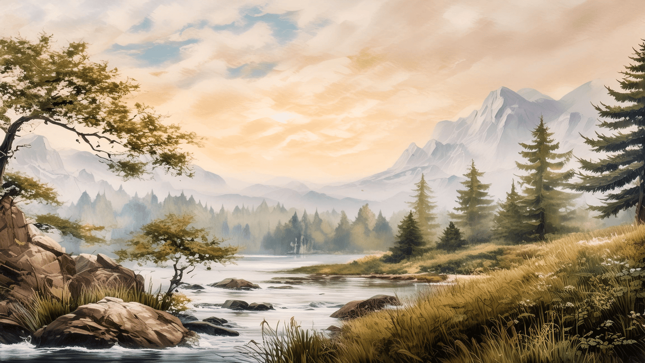 Digital Art of Majesty in Motion: Cascading Mountain River