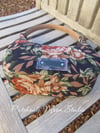 The Celestial Curve Bag measures 11" wide x 5 1/2" high x 3 1/2" deep.