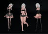 • Cat hood, paw pasties, boots, sleeves, top, skirt, rings, backpack, choker, corset and panties.