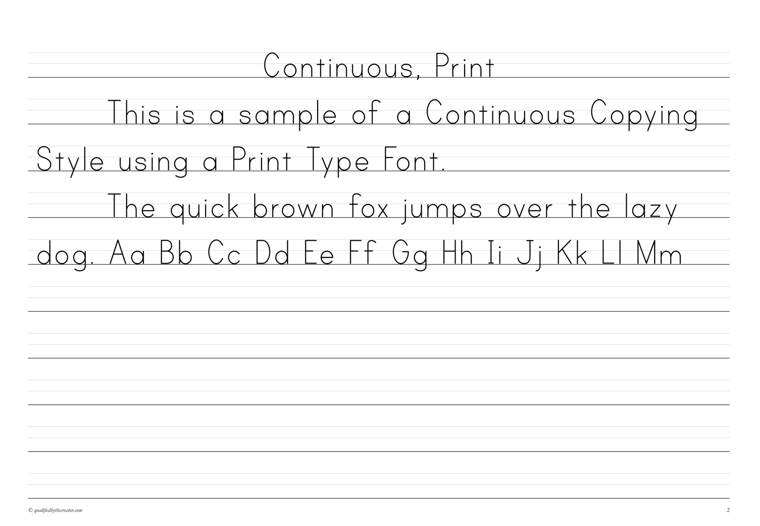 This free download showcases the copying styles (i.e., Line by Line vs. Continuous) and fonts you can choose when purchasing digital Copywork sheets from the shop.
