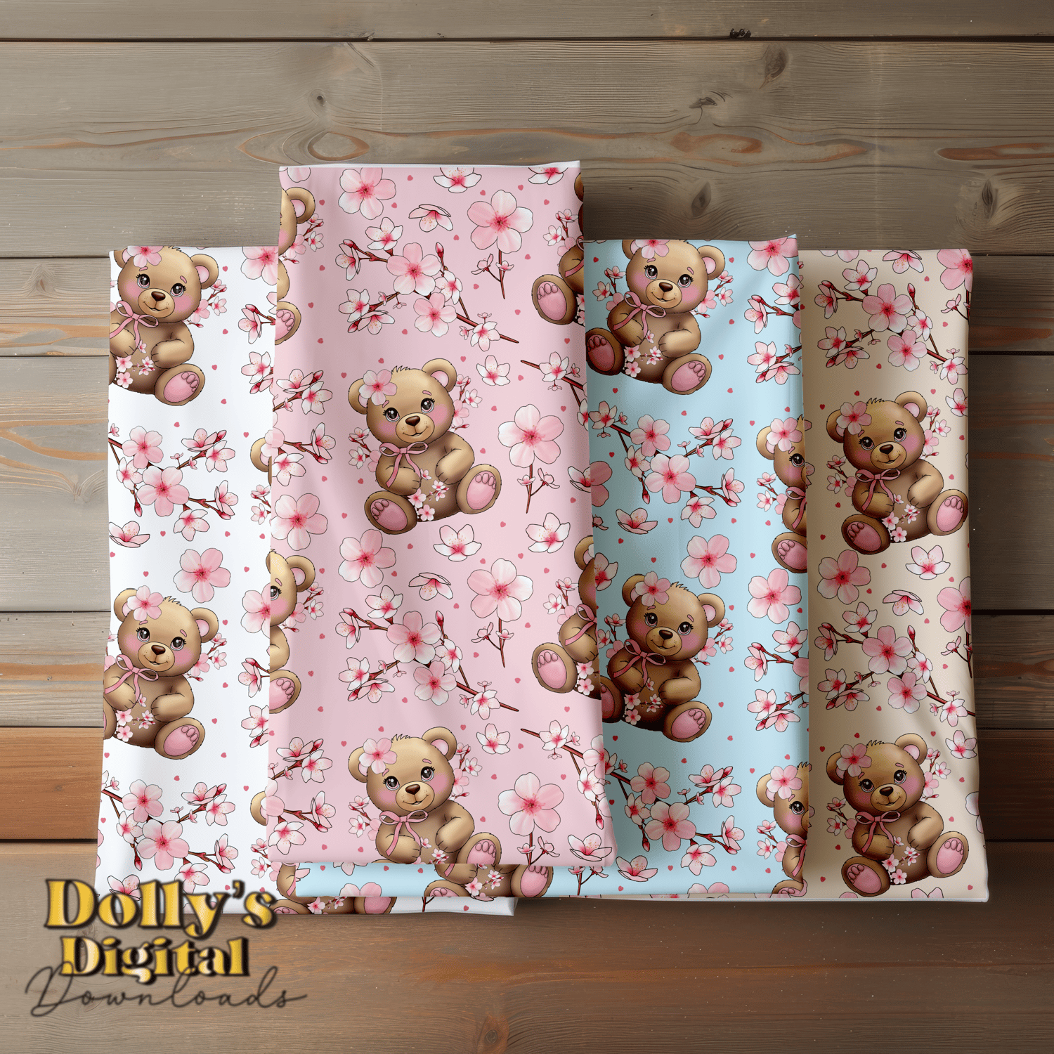 Instant digital download of our Cherry Blossom Bear Seamless Pattern (4 PNG’s)