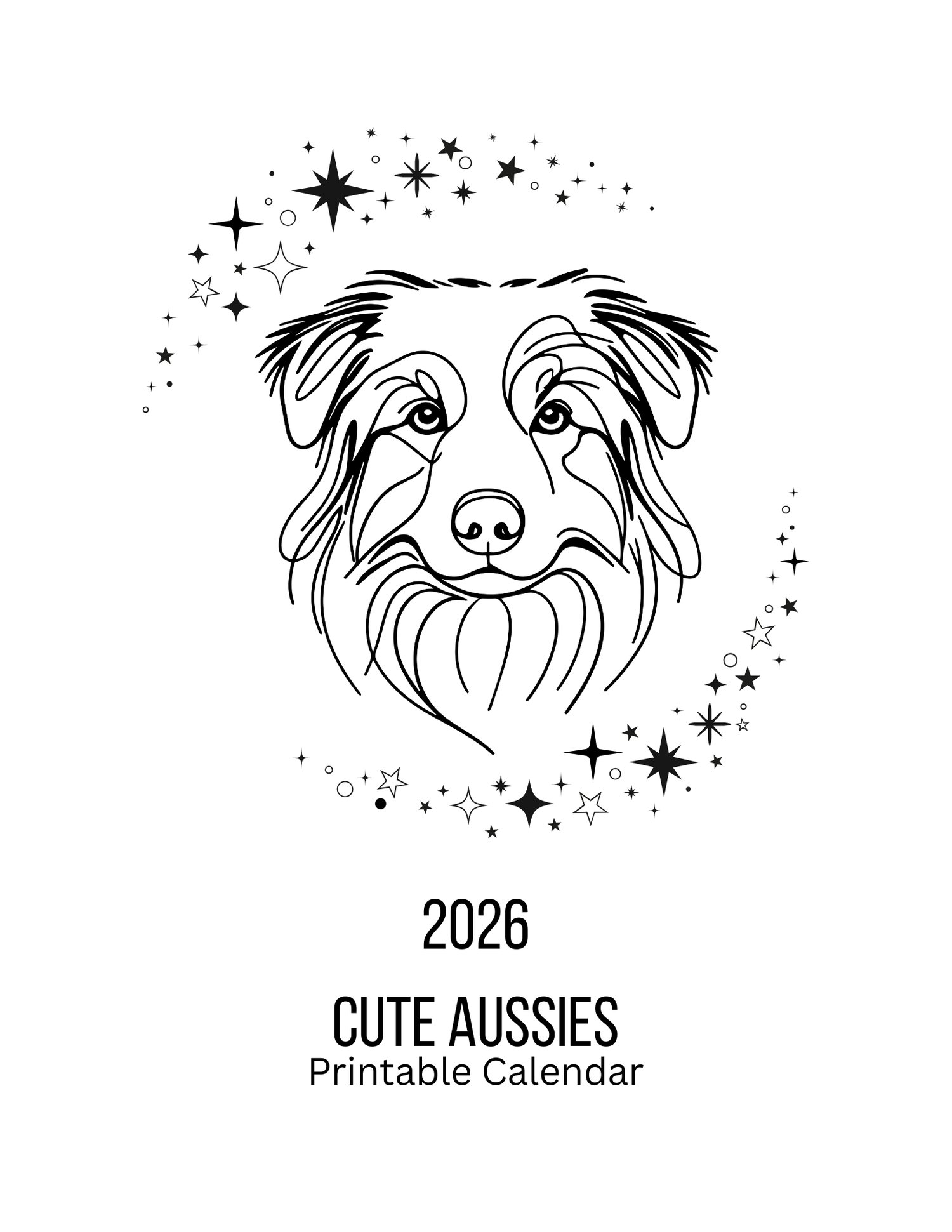 2026 CUTE AUSSIES Printable Calendar – A Year Filled With Australian Shepherd Charm