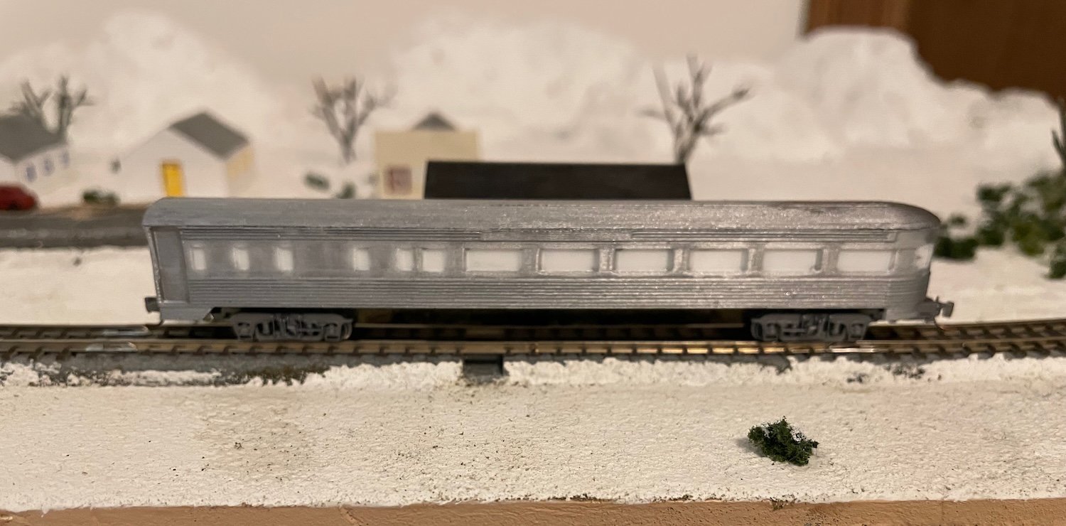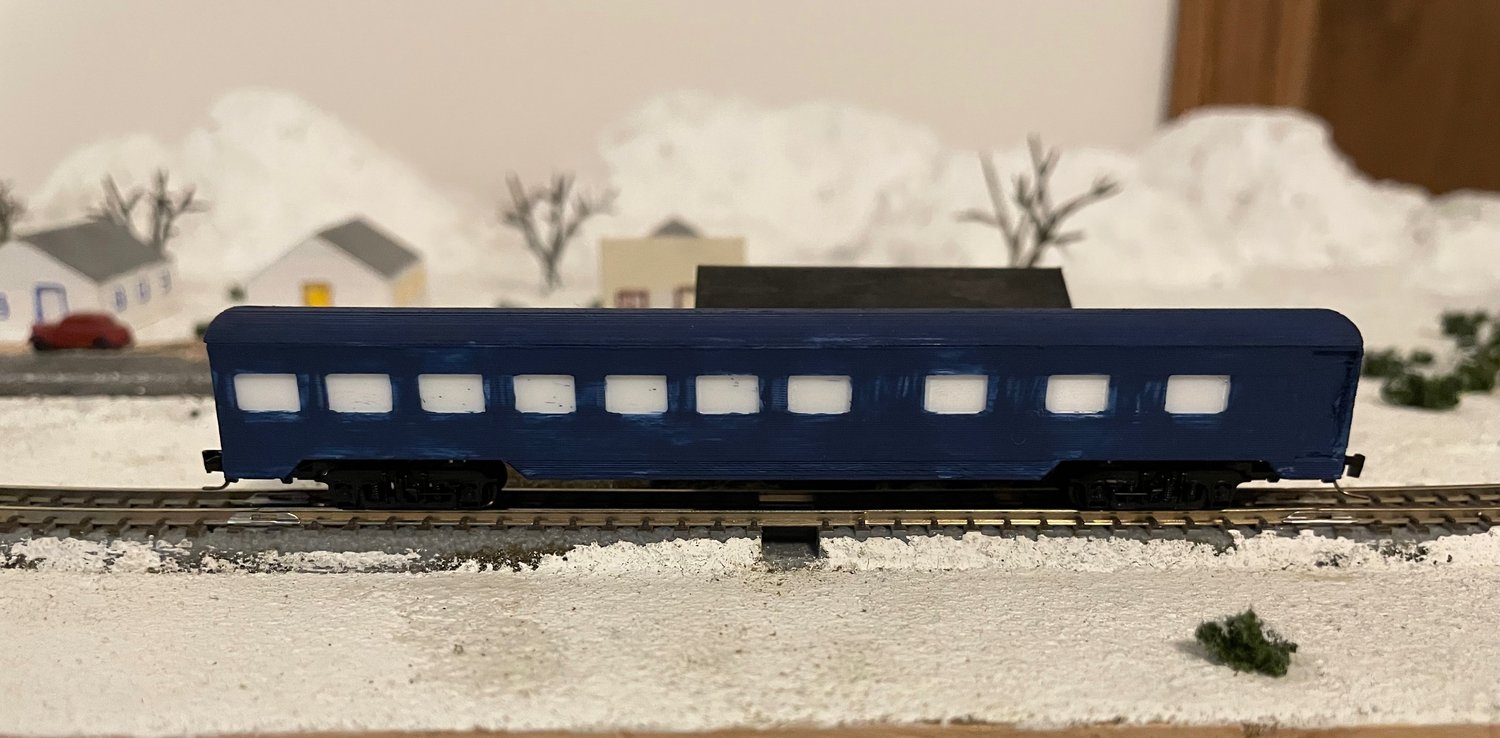 This is a model of a 40' Fowler-style single-sheathed boxcar with wood doors. The trucks/couplers I suggest for this model are Micro-Trains #954 (Bettendorf Trucks).